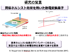 - 異常ネルンスト効果用いた熱電素子のモデル化と動作の実証に成功
