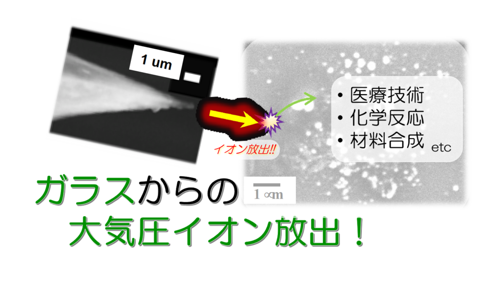 先鋭化したイオン伝導性ガラスからの大気圧イオン放出