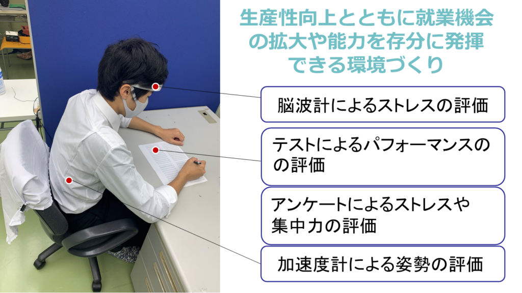 医療施設、航空機内環境、サービス施設など、顧客のための環境としては⾮常に優れているが、労働者の視点からは検討されたことのない施設、あるいはスポーツ施設、ライブ施設などアスリートやパフォーマーの⽬線で検討が必要な施設について、⾝体的負担および精神的負担を測定・評価し、施設計画の提案をすることを得意とする研究室ですので、お問合せください。